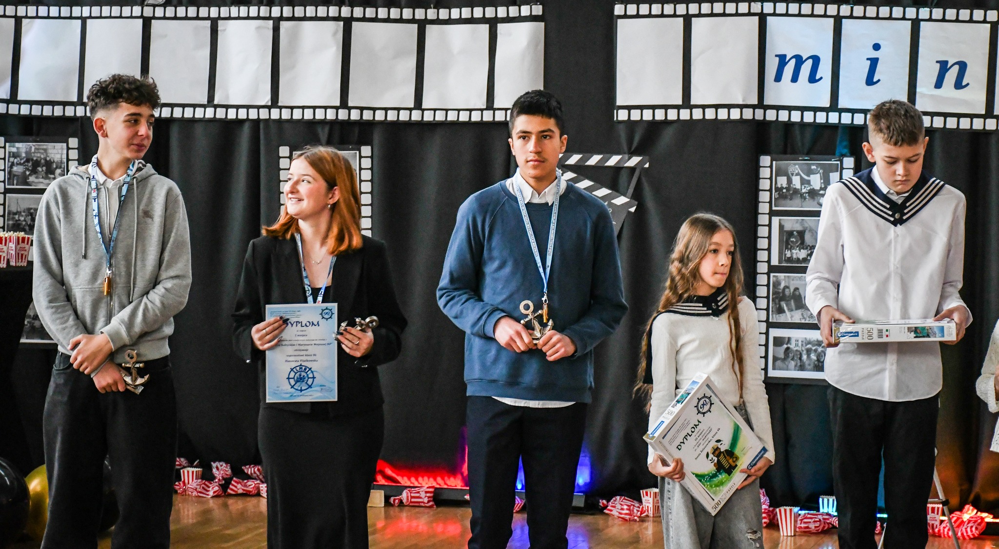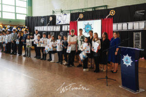 Na zakończenie Pani Dyrektor wraz z Wicedyrektorami – Panią Zofią Saks i Moniką Włodarczyk wręczyły uczniom nagrody zdobyte w marynistycznych konkursach oraz zaprosiły gości do oglądania prac na przygotowanej wystawie.